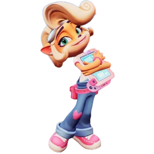 クラッシュの妹ココは、バンディクー兄妹の頭脳担当です。機械の修理や問題の解決を得意とし、いつだって好奇心旺盛。豊かな想像力を持っています。愛用しているピンクのタブレットは、どんな時も手離しません。タブレットの中に保存されているのは、丁寧に書かれた設計図や、温めているアイデア、自分用のメモなどです。