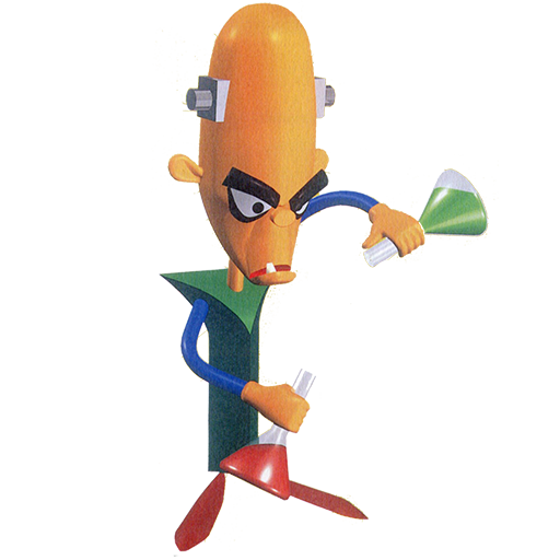 ネオ・コルテックスの参謀からクラッシュたちの協力者になったのもつかのま、今ではまた裏切ってネオ・コルテックスに味方しているという超〜気まぐれな科学者。以前クラッシュの暮らす島を悪の本拠地として改造しはじめたころには、「エヴォルヴォレイ」という動物を進化させる機械をつくり、動物たちを次々と改造していった悪いヤツ。