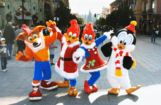 さらにおなじくハリウッドエリアで会うことのできた「ウッディー・ウッドペッカー」「ウィニー・ウッドペッカー」「チリ―・ウィリー」の3人と一緒に行動している姿も多く見られた。(画像は2005年の「ユニバーサル・ワンダー・クリスマス」のもの)