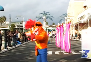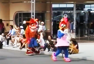 映画監督の姿をしてカチンコに乗る「ウッディー・ウッドペッカー」を先頭に、様々な名作映画のシーンを再現したフロートが登場するパレード。クラッシュ・バンディクーは陽気なポリスに先導され、高らかなファンファーレとともに「ウッディー・ウッドペッカー」「ウィニー・ウッドペッカー」の二人と先頭のユニットで登場。リズムにノリながらダンスを踊ったり、周囲の人の写真撮影に応じながらパレードに参加していた。